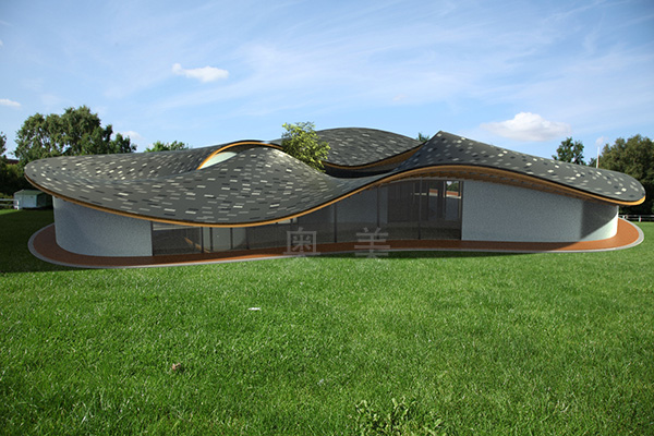 此為青島益銘私人別墅項(xiàng)目,此屋面系統(tǒng)采用的是新型建筑材料金屬?gòu)?fù)合瓦鋪...