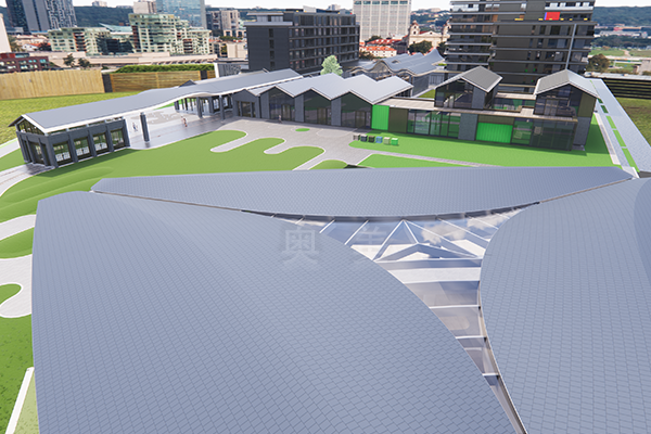 此為惱包奧萊水世界項(xiàng)目,此屋面系統(tǒng)采用的是新型建筑材料金屬?gòu)?fù)合瓦鋪設(shè)...