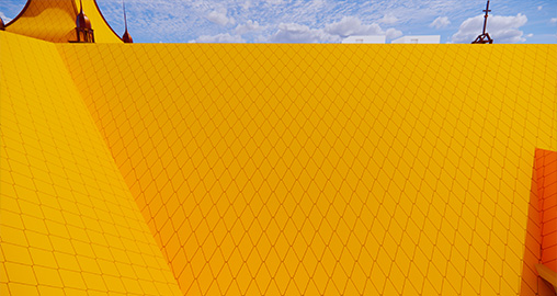 此為惱包奧萊水世界項(xiàng)目,此屋面系統(tǒng)采用的是新型建筑材料金屬?gòu)?fù)合瓦鋪設(shè)...